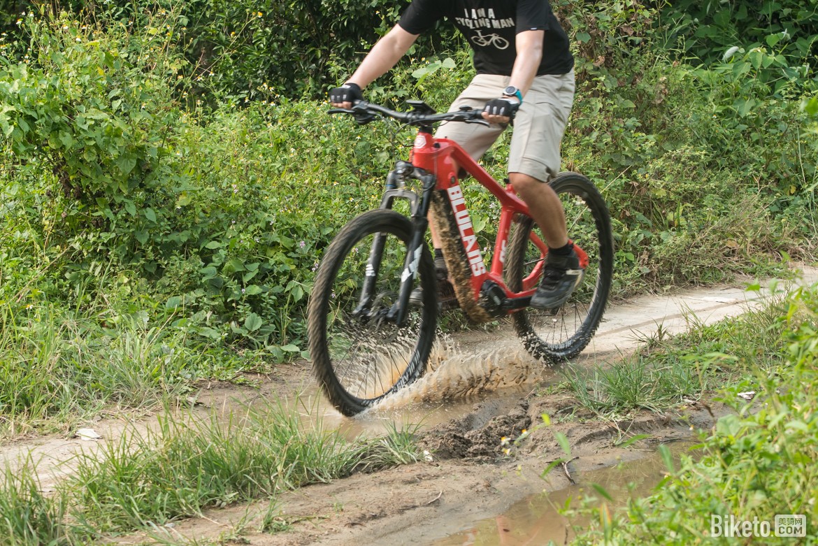基于此前S6上八方M600的长期测试,八方电机表现出强劲的动力和稳定的性能令人印象深刻,对挑战陡坡乱石自然是胸有成竹。在拿到这辆搭载M500中置电助力系统的S6 Lite之后,小编也是迫不及待地将其带去最为险恶的越野路段。最近广州雨水较多,雨后进山刚刚好可以测试S6 Lite整车和八方M500电助力系统在恶劣环境下的表现。