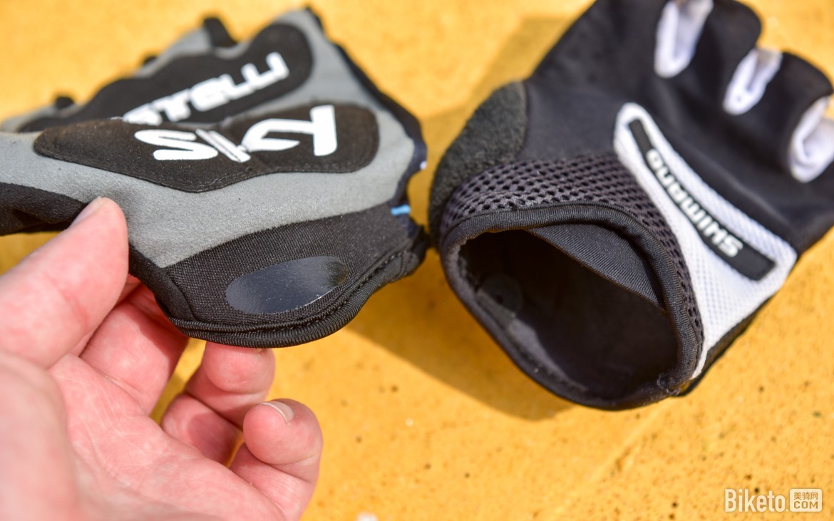 大拇指处的擦汗毛巾布,Vertex太薄,SHIMANO最厚,擦汗更舒服。如果你汗多的小伙伴还是建议选择SHIMANO AIRWAY或者蝎子。