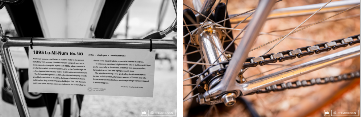 铝是除铁以外最广泛使用的金属,19世纪上半叶,它因为良好的重量饱受赞誉,曾经一度比黄金贵重,到了1890年代,铝的价格终于下探到可以制作自行车,这台车也是自行车行业首次采用铝来制作。这台车的铝管是空心的,所以在厂商不得不采用一些特殊的技术来抽掉铸造遗留的模芯,为了轻盈,只是车架用铝,轮组是用木质的。不过这台车架还是难以逃出时代的局限,直到几十年后铝合金技术成熟,才再次登上舞台。