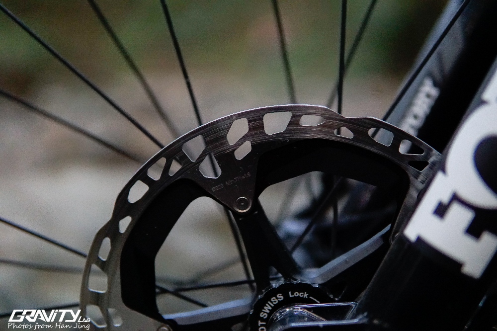 轮圈使用的是来自德国的Syntace C33i碳纤维轮圈,拥有极高强度的同时,重量控制得非常不错。