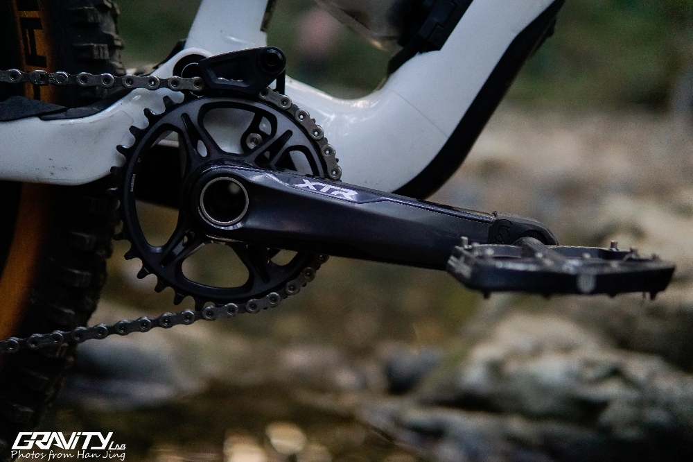 套件方面,没有选择常规的整套SRAM或者Shimano的产品,而是采用Shimano XTR M9100套件混搭SRAM X01 Eagle AXS。