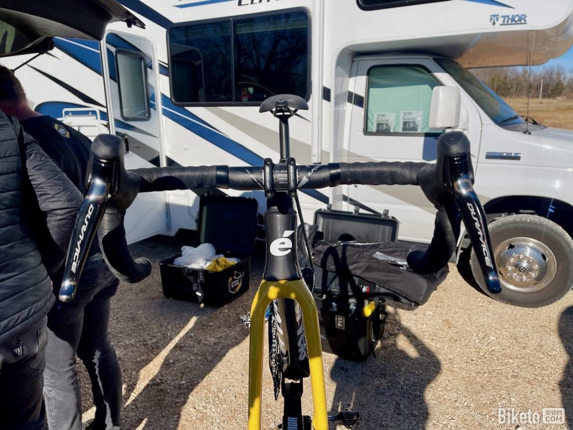 出于对比赛地形的判断,沃斯选择了一套A.Dugast牌的Typhoon 33mm管胎以应对赛场的泥泞。这款轮胎既能在弯道上提供最大的牵引力,也能在直线路面上提供较小的滚动阻力。