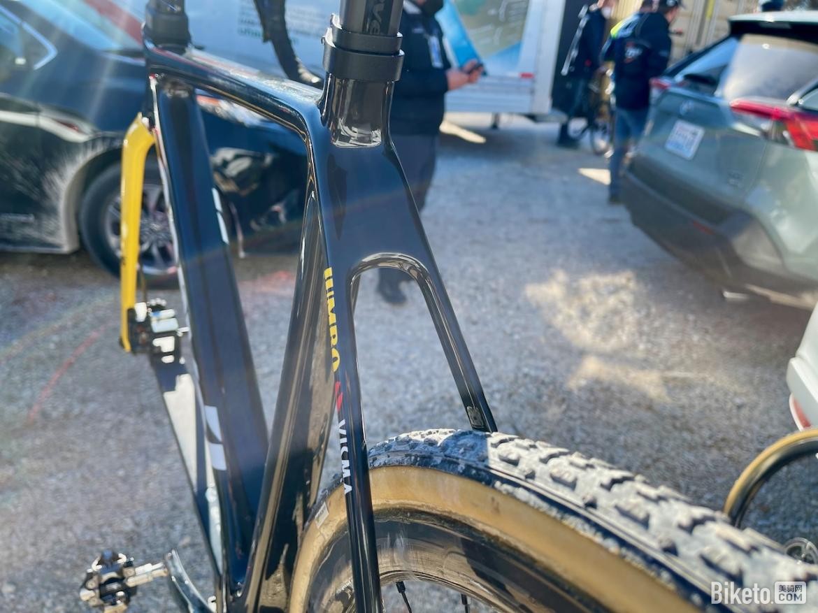 Cervélo非常贴心地设计了带双夹环的D型座管,增加了稳定性,可以在发生碰撞时保持座包不偏移。双夹环也是应选手要求的改进,可以有效阻止座杆在激进的越野骑行中下沉,同时把舒适度做到最高。