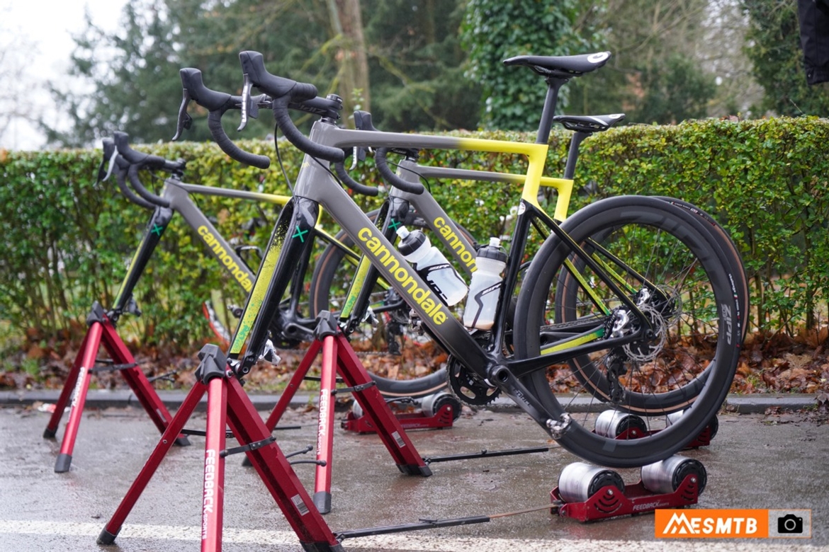 ▲车手赛前热身,超便携的Feedback滚筒骑行台成为车队最爱