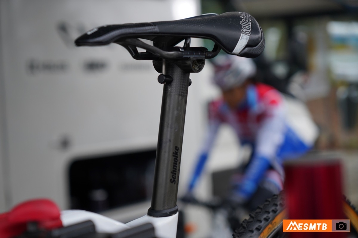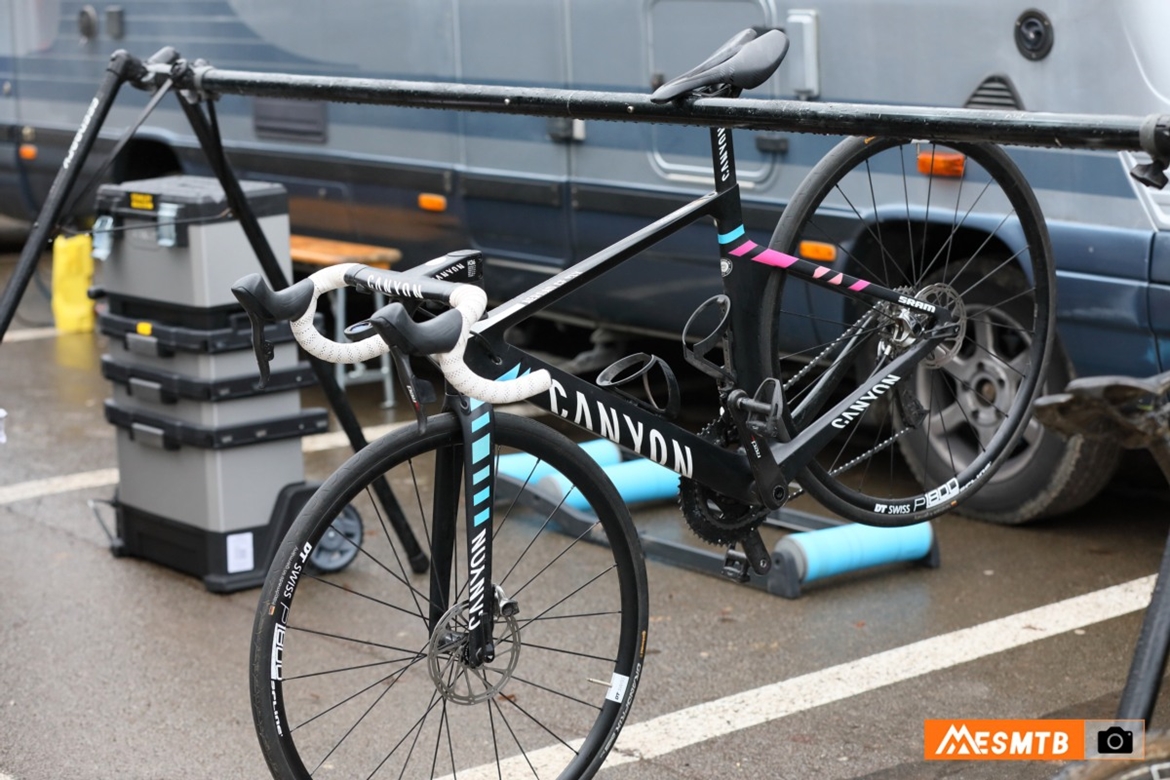 ▲怎么会有一辆公路车?看看旁边的滚筒骑行台就应该知道,这是车手们骑台热身的工具