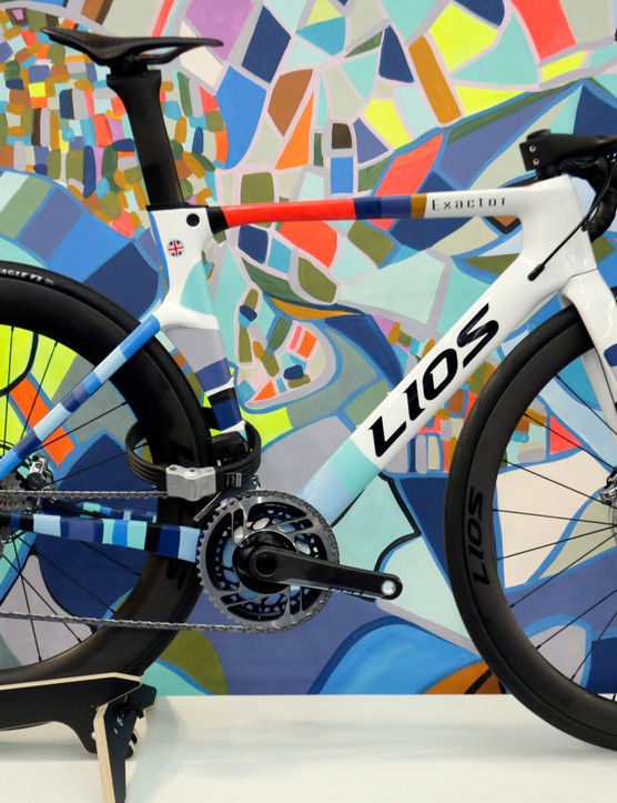 这辆车的涂装是由多媒体艺术家Jan Erika手绘的,如果你仔细看,你会看到画笔的笔触和彩绘效果。车子搭配了SRAM Red eTap AXS套件,LIOS碳轮组和Selle Italia座垫。