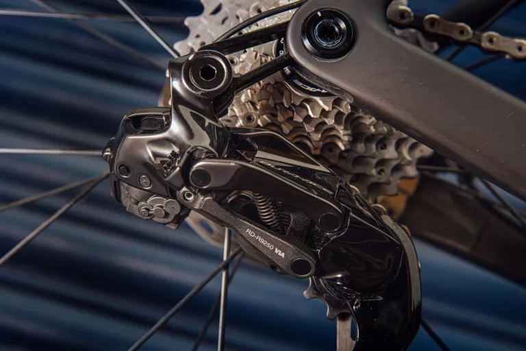 Shimano Dura-Ace R9200后拨配备电池充电接口,还采用了源自山地自行车套件的影子后拨设计。采用影子后拨设计可以缩小后拨尺寸,降低风阻,并降低摔车时后拨遭到的损伤。