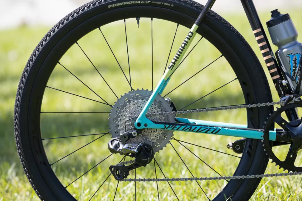 Sarah Strum的闪电S-Works Crux使用SRAM的eTap 1x电变系统和超大的飞轮。