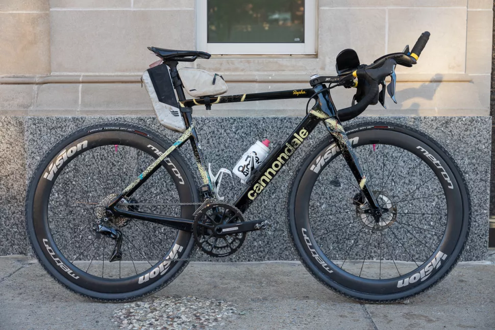 更粗的轮胎和更大的飞轮可以适应Unbound赛场上复杂的路况,比赛日当天的天气更加潮湿,来自英孚教育车队的Alex Howes和Lachlan Morton为他们的Cannondale SuperSix Evo CX更换上了38mm的外胎。