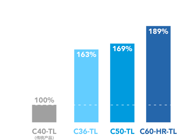 这一代的轮组成功地提高了驱动刚性,与传统型号相比驱动高度显著增强。对比传统产品C40-TL,C36-TL提高了63%,C50-TL提高了69%,C60-HR-TL(高刚性规格)出人意料地提高了89%( *数据来源于禧玛诺内部实验室)。