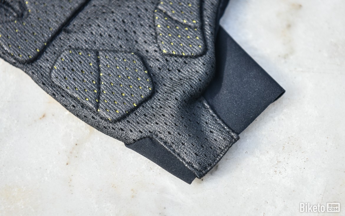 手掌面采用号称“仿生科技”微纤维网眼面料,我也不知道怎么个仿生法,不过触感还行,防滑性能不错。