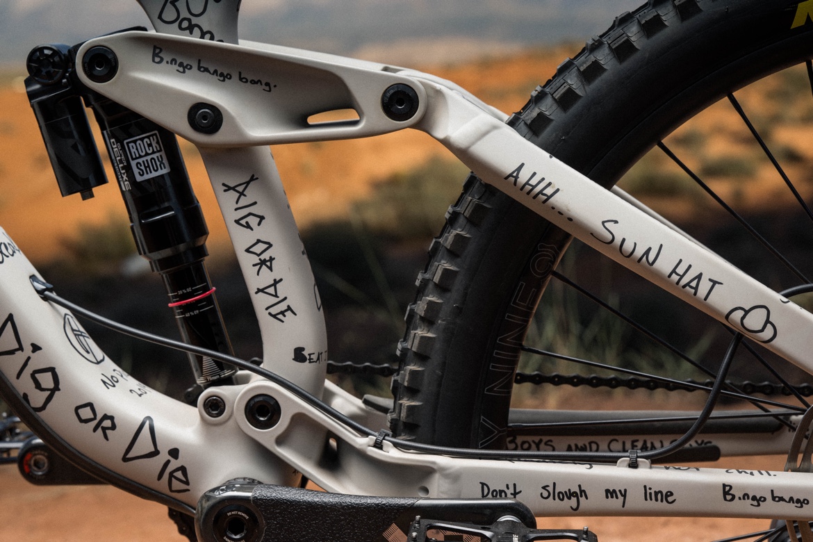 布兰登带了两台Trek Session到了犹他州,一台是单肩叉,另一台是双肩叉。去年,他在以崎岖闻名的赛道上使用单肩叉用戏剧性的方式赢得了他的第四个Rampage坠山赛冠军。至于今年,我们目前还不知道他究竟会使用哪台车上场,直到最后上场前才会揭晓。但我们目前可以同时欣赏这两台精美的赛车,让我们来看看有哪些细节吧: