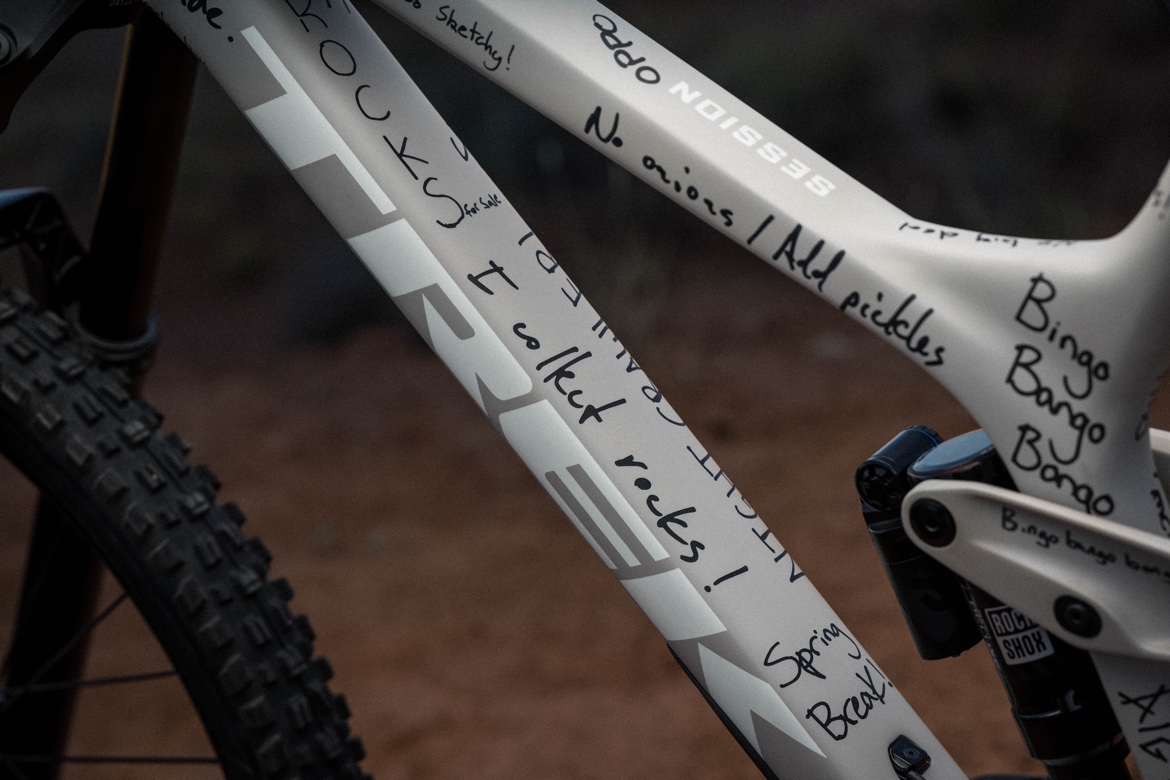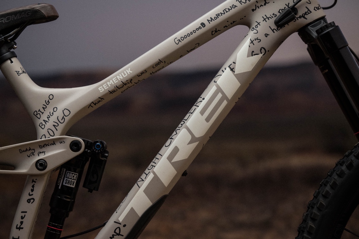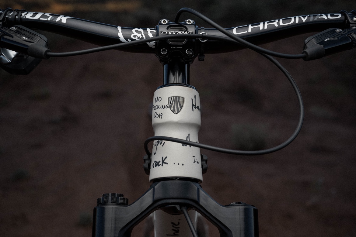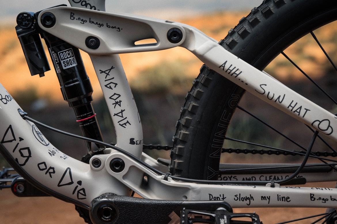 布兰登带了两台Trek Session到了犹他州,一台是单肩叉,另一台是双肩叉。去年,他在以崎岖闻名的赛道上使用单肩叉用戏剧性的方式赢得了他的第四个Rampage坠山赛冠军。至于今年,我们目前还不知道他究竟会使用哪台车上场,直到最后上场前才会揭晓。但我们目前可以同时欣赏这两台精美的赛车,让我们来看看有哪些细节吧: