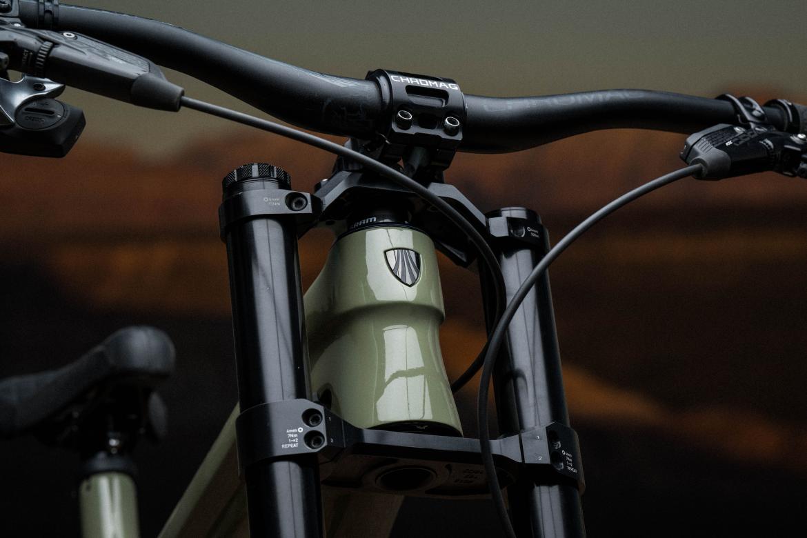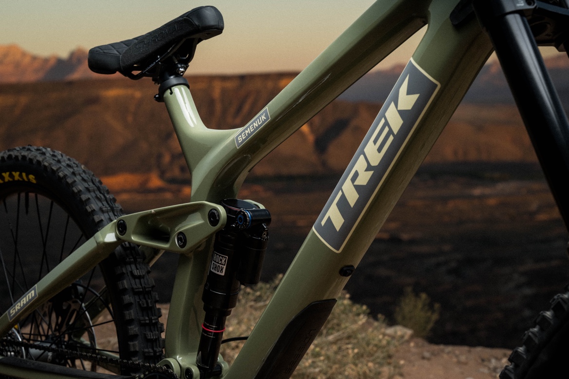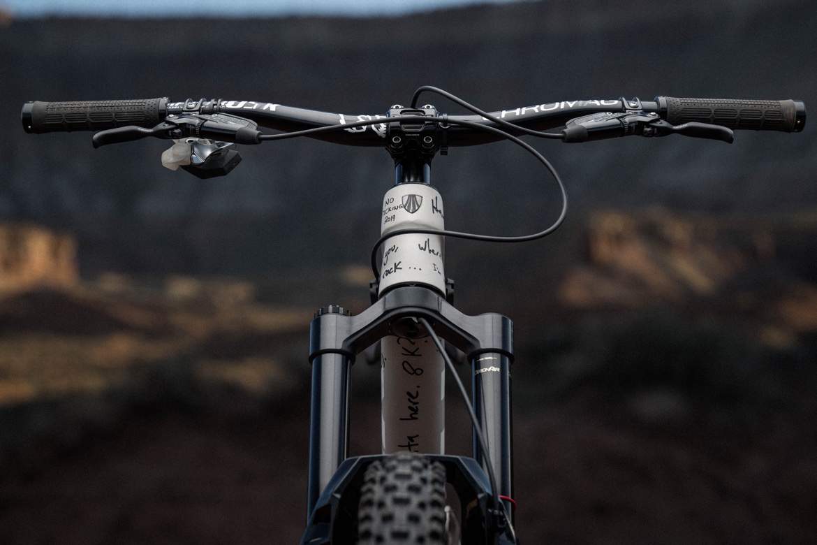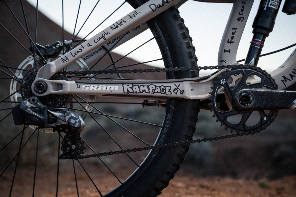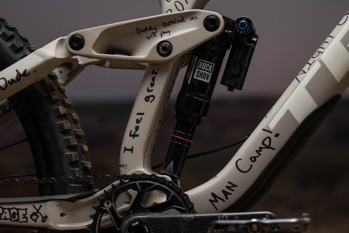 布兰登带了两台Trek Session到了犹他州,一台是单肩叉,另一台是双肩叉。去年,他在以崎岖闻名的赛道上使用单肩叉用戏剧性的方式赢得了他的第四个Rampage坠山赛冠军。至于今年,我们目前还不知道他究竟会使用哪台车上场,直到最后上场前才会揭晓。但我们目前可以同时欣赏这两台精美的赛车,让我们来看看有哪些细节吧: