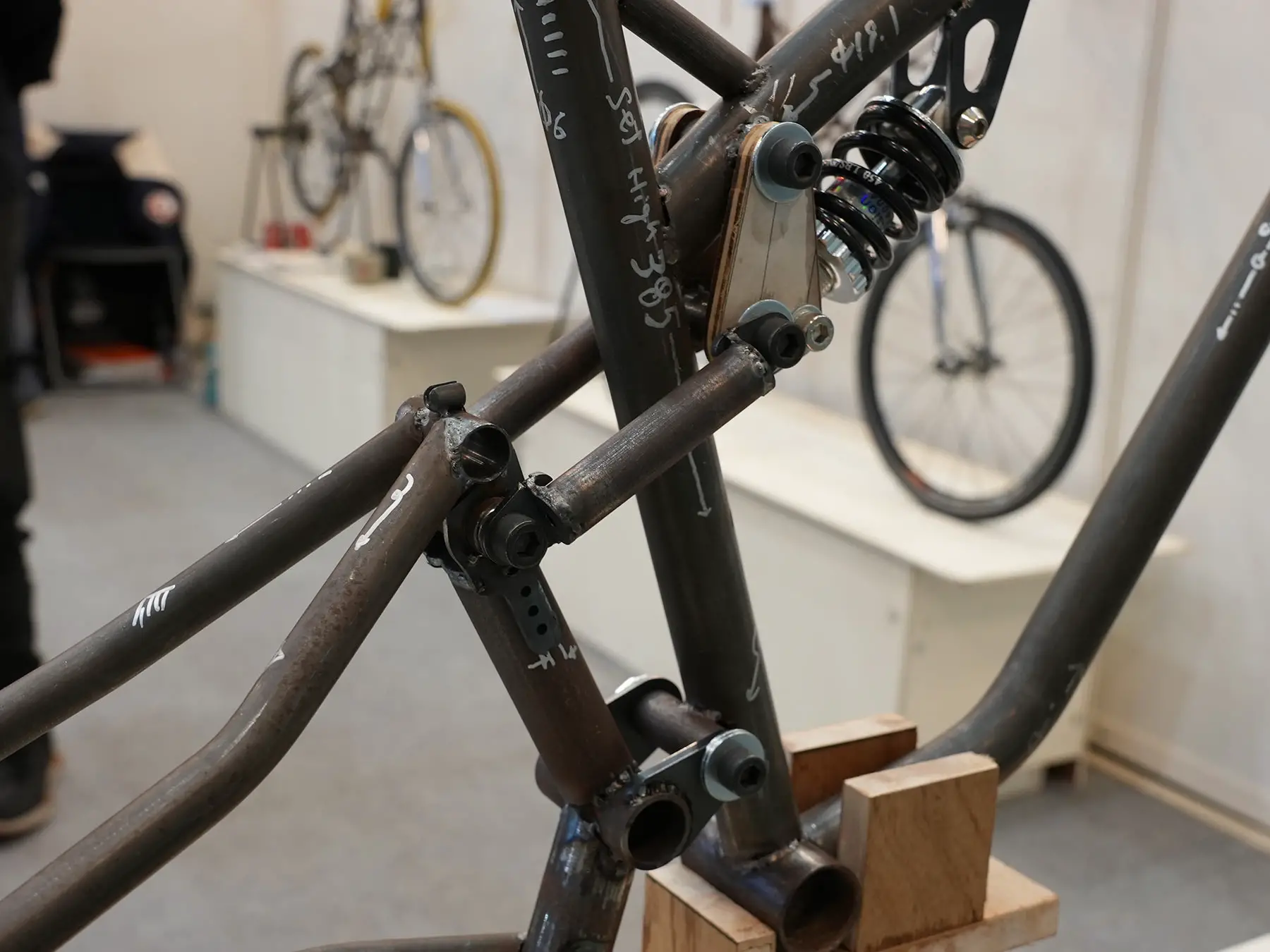 我认为这个原型叫做Fronbital,这个模型用来测试和计算几何以及避震运动的,请注意连杆不同的安装点和滑稽的短后避震器,但我最喜欢的部分是这个木质连杆。