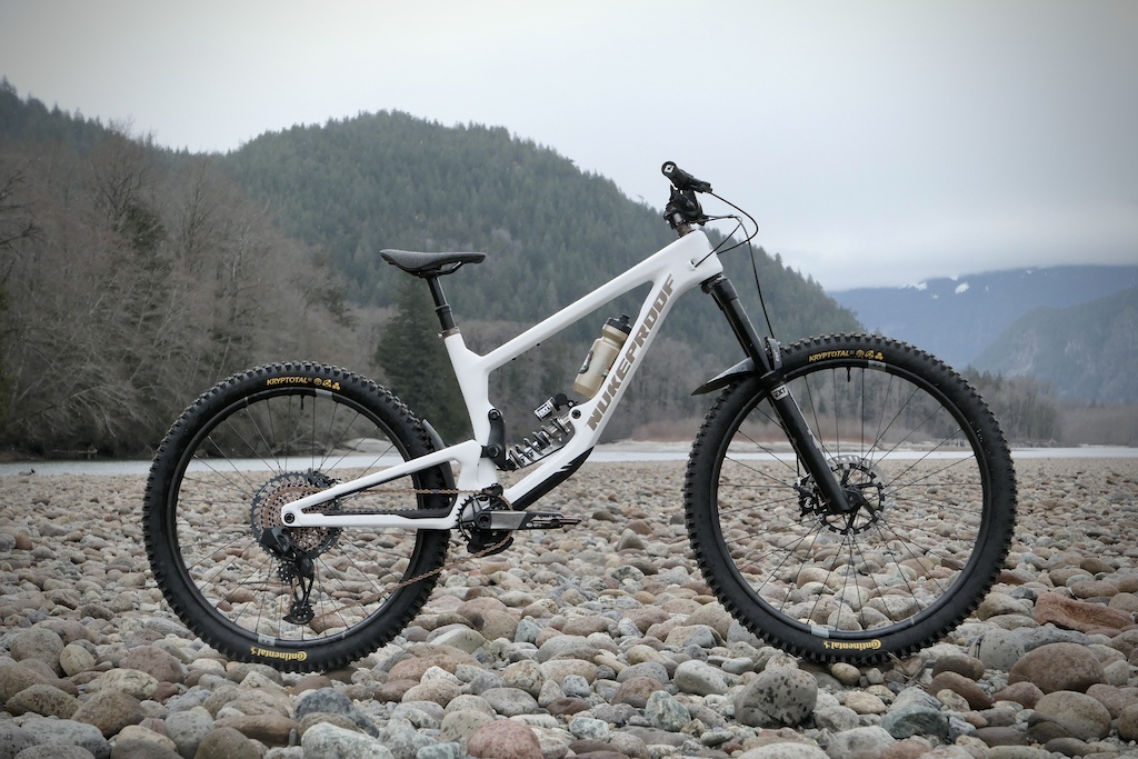 Nukeproof Giga 297便是其中一款突破极限的自行车,前后行程均为180毫米,理论上它的数据完全符合我的需求。车架坚固、设定松弛且后叉很短,这似乎是一台完美战车,它可以上赛场,进行一些高难度的动作,也可以在长途骑行,穿山越岭。在尺寸和姿态方面,L码具有475毫米的reach、63.5度的头管角度、435毫米的后下叉和混合轮径设定。