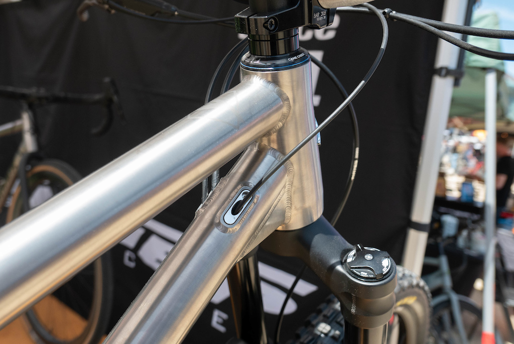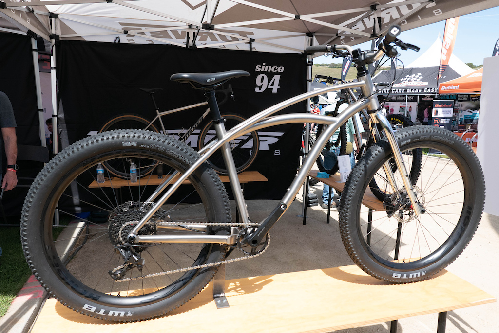 这辆名为Scrub的车型,是自行车品牌Turner 推出的最新款钛合金硬尾山地车。它的头管角度为64.5度,座管角度为76度,原车使用的是一根160毫米的的前叉,只有“标准”和“加大”两种尺寸可选。