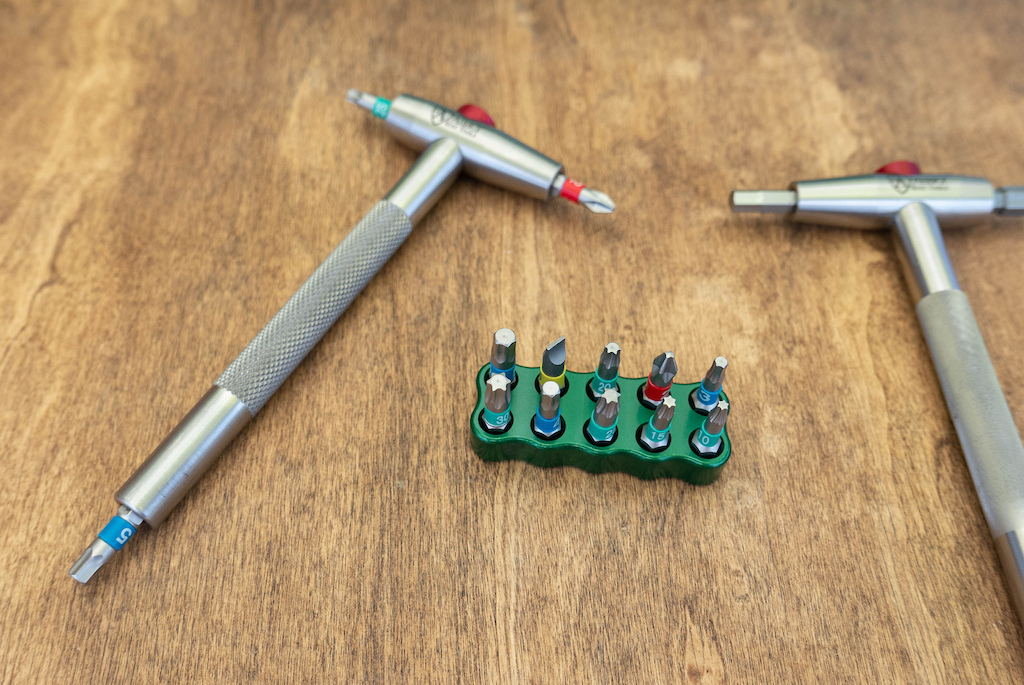 Abbey Bike Tools的组合工具使用的德国品牌Wera的转换头,这个品牌向来以高质量闻名。这套组合工具有一款基础版本可选,售价为60美元(约合人民币415元)。还有一款可移位并包含8个转换头的高级版本可选,售价为120美元(约合人民币830元)。
