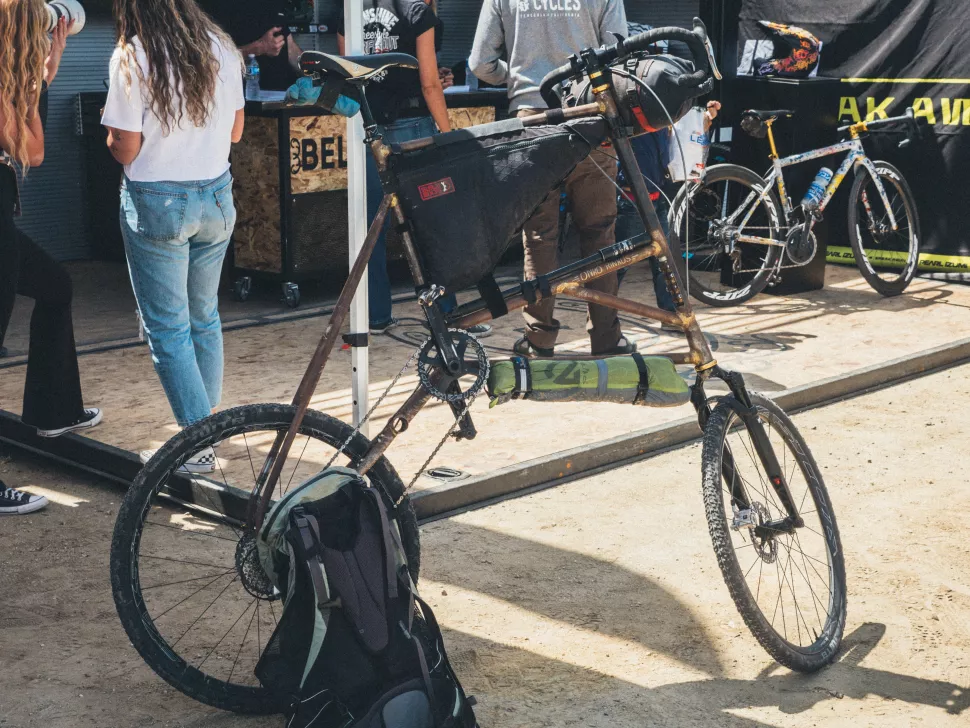 展会上有几个人骑着高大的自行车,这辆看起来已经准备好冒险了。
