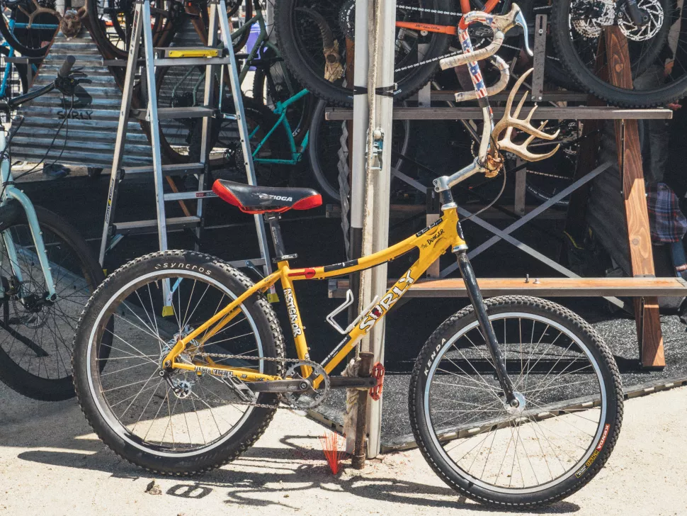 这就是Surly Donger,一款比大多数自行车都经历过更多考验的自行车。在它的历史中的某个时刻,有人只贴了标签就把它退回给Surly,甚至没有包装。它配备了可以说是第一批胖圈,采用圈刹,不过现在安装了一个后碟刹。