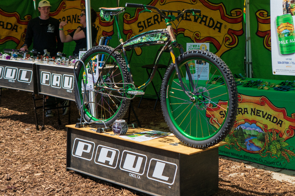 零件品牌Paul和啤酒品牌Sierra Nevada均来自美国内华达山脉,因此它们的展厅也是风格满满。这辆klunker山地车由Paul等小众零件作坊组装而成。