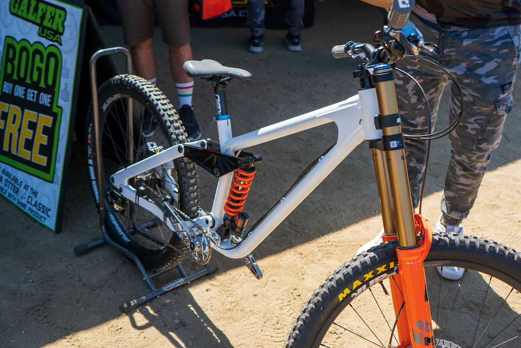 展会上还有很多类似这辆Neko Mulally的手工山地车,与量产产品不同,这些手工山地车更加能体现制作者的个人风格,其结构和涂装设计都非常独特。这款车的后叉由碳纤维打造,前三角则为钢制,采用的是四连杆避震结构。