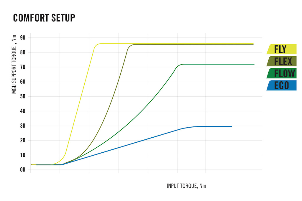 MGU中置电机整合系统以德国用于工业领域的无刷电机为研发基础,并使用磁性更强的磁铁进行了优化,并根据电助力自行车的特点进行重新设计。这款中置电机整合系统能够提供约85Nm的相对驱动扭矩。