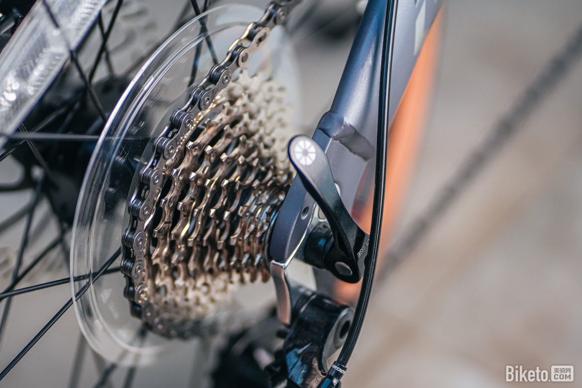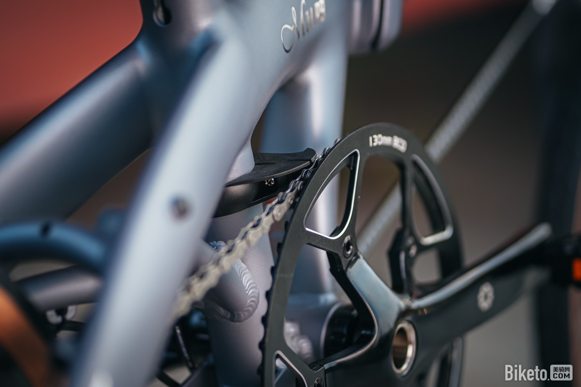 MU P9针对城市路况,采用大行设计的前单盘,后9速变速系统,55T轻量化一体式链盘,搭配11-28T后飞轮。