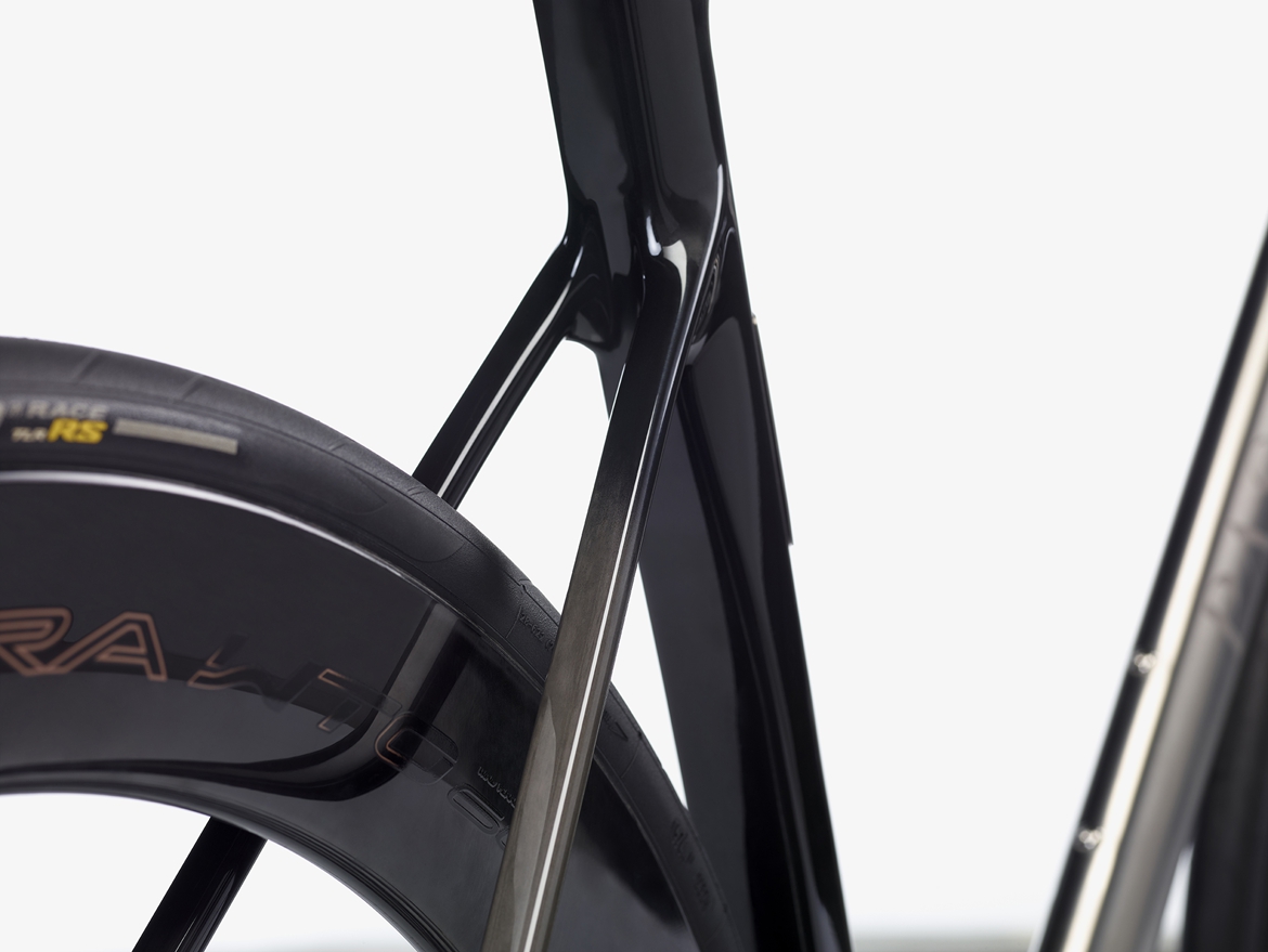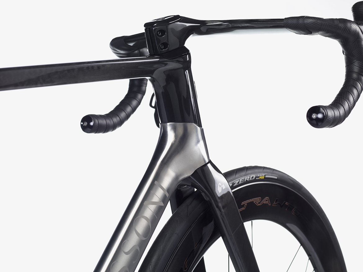 PASSONI深知,每⼀次创新都必须根植于本质。AT-01的设计并⾮追求表⾯的“轻”与“快”,⽽是追求⼀种结构与情感上的平衡。在这副全新的⻋架中,钛与碳并⾮被简单拼接,⽽是被赋予了各⾃的使命:下半部分以钛打造⸺坚韧、精准、稳定,像骑⼿的⼼脏;上半部分以⾼模量碳纤维⼀体成型⸺ 轻盈、流线、安静,如呼吸的节奏。