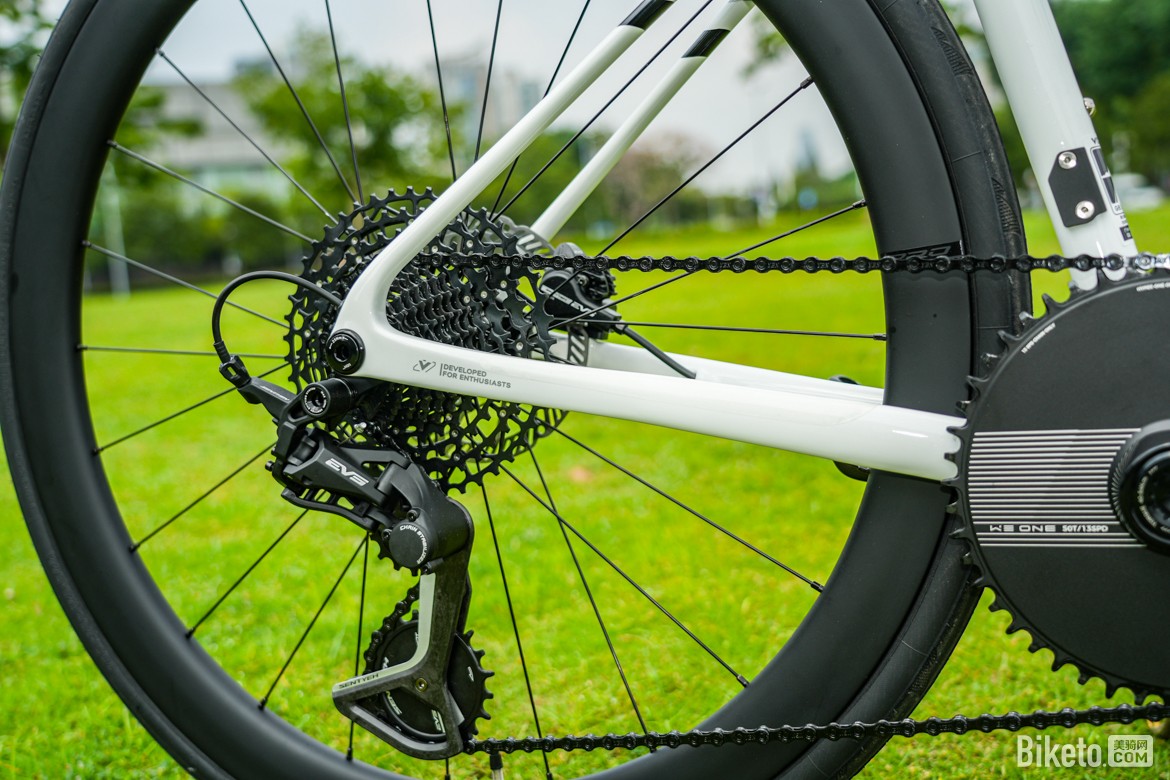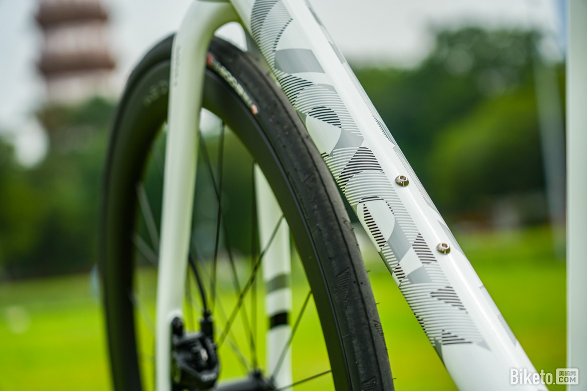 白色涂装风格与ONE相似,就是多了新的下管标。阴阳条纹构成的下管标看上去还挺有意思的。