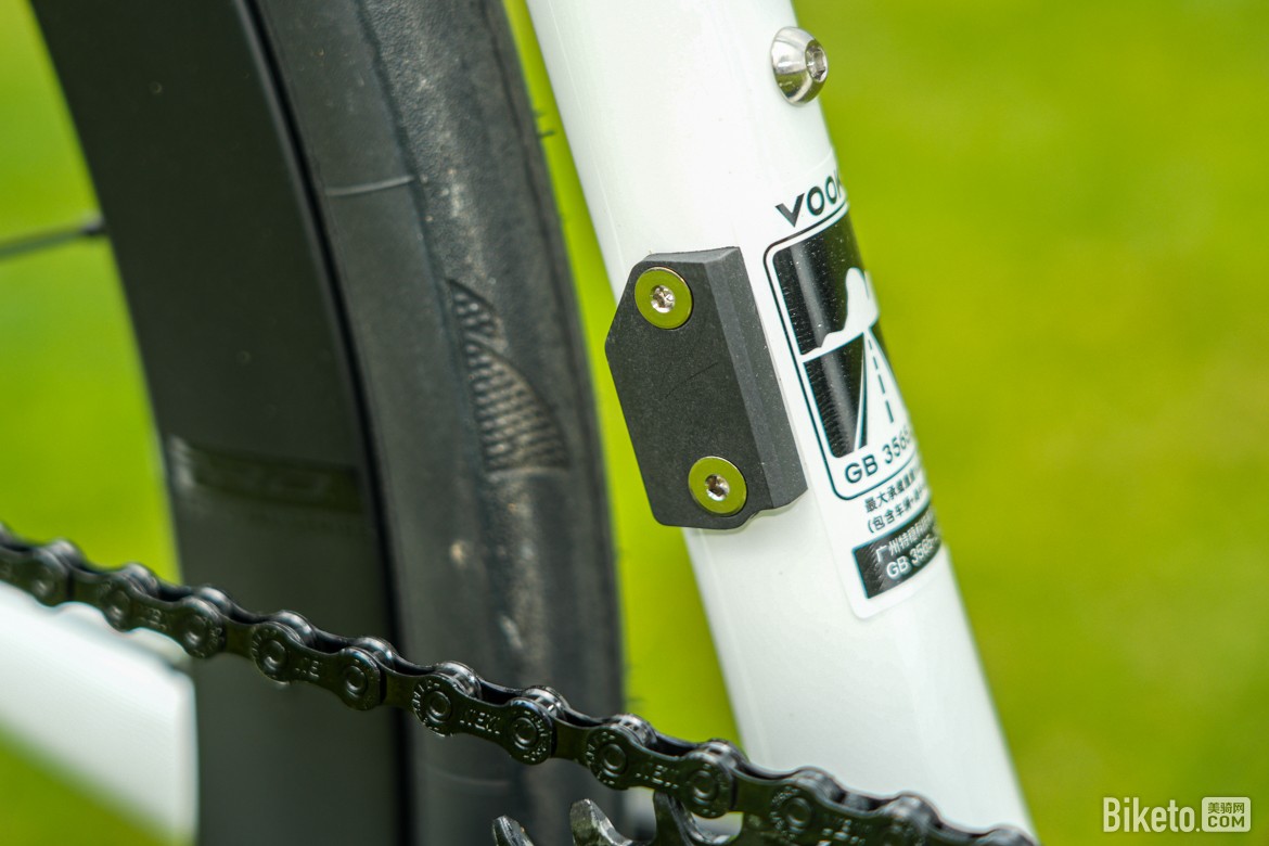 毕竟V8车架要考虑到车架组零售市场,所以还是保留了前叉挂耳。但为单盘和V8整车设计了一个挂耳孔罩盖。罩盖凸起比较明显,如果是小编自己装车,用犀牛皮把螺丝孔盖住就完事了。