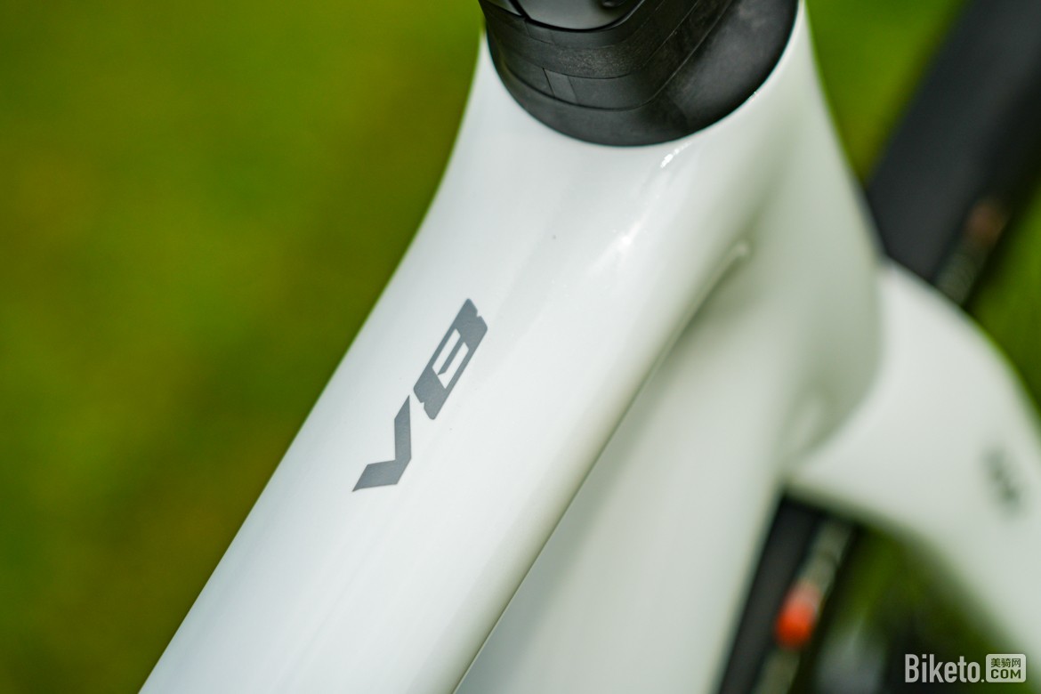 V8车架可以说就是碳纤维版的ONE,延续了ONE简洁耐看的圆管管型。搭配下沉式后上叉,经典里又带点现代气息。