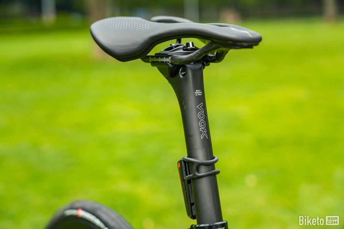 对于千元价位的整车与它的目标客户来说,最重要的并不是什么刚性和气动性能,而是“好骑”。最能让入门消费感觉好骑的主要是两个方面:重量和舒适性。S码VOOK V8安装脚踏、水壶架和码表架后的整备重量为7.58kg,作为一款仅6999元的整车来说,已经是十分轻的重量。V8的骑行感受在该级别里算是比较轻快的,这已经达成了“好骑”的一半目标。