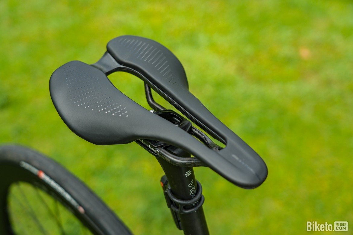 舒适性也分为两个方面:车架几何与减震性能。V8车架的几何提供了比较高的STACK和较短的REACH,碗组盖造型也比较高,预留的垫圈也够多,令用户的骑行姿势舒适直立,舒服的骑行姿势才能令你骑得更快更远。车架和座管的舒适性表现不错,提供了较好的减震性能,后部比较舒适;车架前部因为车把比较硬,以及把带非常薄,减震表现不如后端那么优秀。