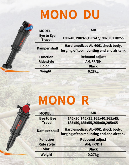 新款MONO系列后胆延续了 RST 一贯的可靠品质,在轻量化设计上实现突破性升级,同时保留了足够的支撑力与清晰灵敏地回弹反馈 —— 面对颠簸路况时柔软吸震,遭遇陡坡落差时坚韧抗冲击,为全避震山地自行车带来全方位的性能跃升。更值得一提的是,产品涵盖公制与传统等多种尺码选项,彻底解决适配难题,让不同车型的玩家都能轻松解锁专属避震方案,在越野路上畅享无拘无束的操控快感!