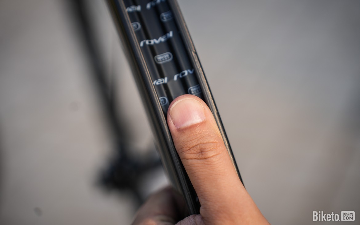 闪电在内宽方面比较保守,坚持使用21mm内宽,最佳搭档是28c外胎,可以实现最佳气动效果。