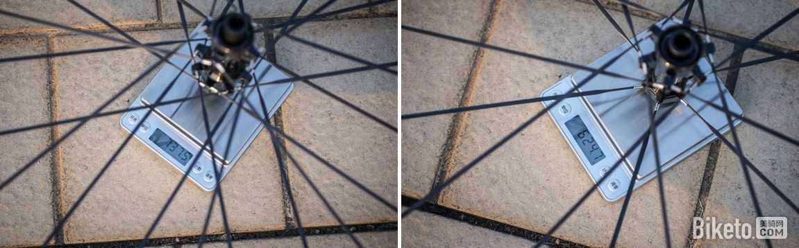 重量方面,CLX SPRINT去掉真空气嘴、搭配XDR塔基的实称重量为624.7+737.5=1362.2克,仅比CLX3重了约66克!作为一对60mm框高区间的高框轮组,这个重量已经十分惊人。要知道,几年前,低框爬坡轮组都差不多是这个重量。