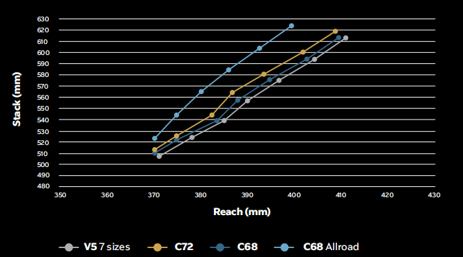相比前代车型,C72 可以调整得更偏向耐力,但同时仍保留了其激进的基因。更大的头管角度和更长的前伸距离减少了拖曳距,在保持轴距的同时,延续了竞速公路车典型的灵敏转向和敏捷操控性。