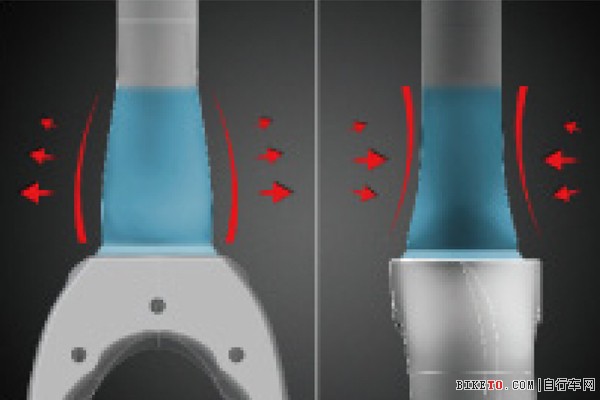 前叉在竞技中有两个重要作用:提供侧向刚性以实现精确转向,提供垂直舒适度以吸收路面颠簸。Trek的E2非对称前叉/转向管是第一个真正兼顾两者的系统。