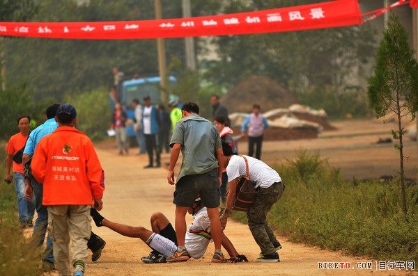 本次比赛的第一个大的挑战是一个坡度超过8%的陡坡,选手们都借用前面下坡的速度瞬时冲上陡坡。但不乏一些实力稍弱的车友只能选择推车。