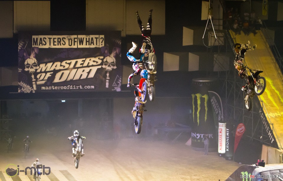 小编注:维也纳极限泥地腾空大师赛是一项非常大型的室内泥地比赛,这项比赛不太注重竞赛性质,更多的是SHOW OFF车手们的绝技,是勇敢者的游戏,绝对”炸爆“你的眼球。小编看了2012年的比赛视频也震惊了,不仅是你传统看见的自行车,摩托车。四个轮子的越野车,滑板车,甚至雪橇车也拿来腾空飞跃。小编特意为大家找到了2012年的比赛视频,本届的视频一旦收到,立马奉上。