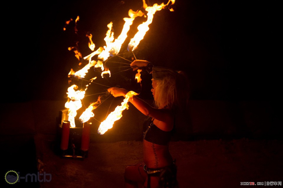 Yushira,其中一位 Fuel girls的专业演员,在表演她的火焰伞之舞。非常非常危险