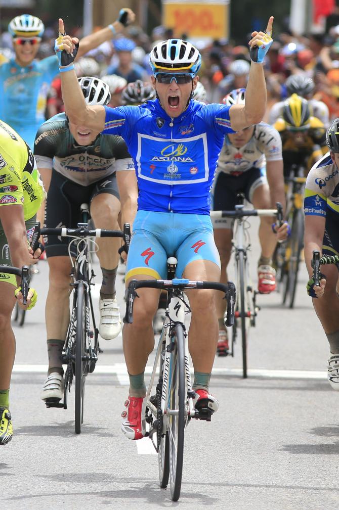 2013年环兰卡威自行车赛今天结束第七赛段的争夺,哈萨克斯坦阿斯塔纳车队的意大利车手瓜尔迪尼以3小时37分17秒打破冠军荒,首夺今年环兰卡威赛赛段冠军,并且以12个赛段冠军的成绩再次刷新了自己此前创造的环兰卡威赛11个赛段冠军总数的纪录!