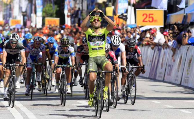 经过10个赛段1469.7公里的争夺,2013年环兰卡威自行车赛今天结束。在最后一个赛段中,意大利凡蒂尼车队的齐奇以2小时39分4秒夺得赛段冠军并抢得冲刺王蓝色领骑衫。日本尼波车队的哥伦比亚车手阿雷东多获得总成绩冠军,穿上黄色领骑衫。中国恒翔车队的王美银荣膺爬坡王和亚洲最佳车手,夺得红色和白色两件领骑衫。