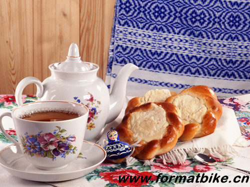 茶:喝红茶,加柠檬片和糖。倒茶时,先从茶壶里倒出一些酽茶,然后用水冲淡。
