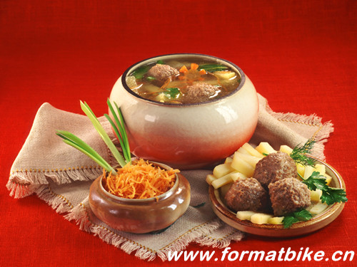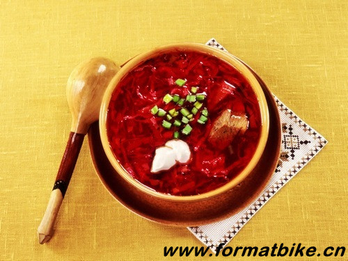 汤:午餐必喝汤。有各种肉汤、鱼汤、酸菜汤、白菜汤等,夏天还有冰汤。“红菜汤“是一道有名的风味。