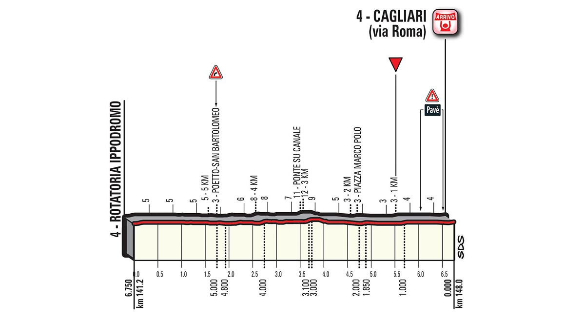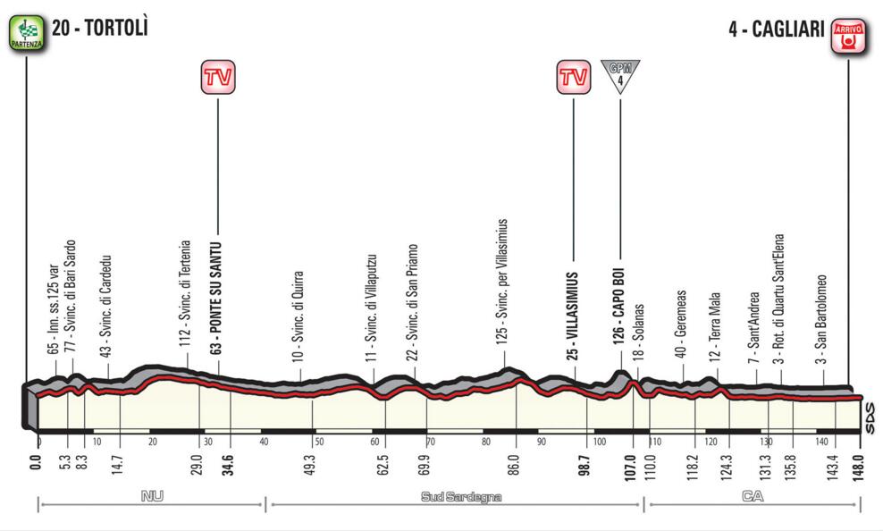第三赛段 托尔托利(Tortoli) - 卡利亚里(Cagliari) 148公里 平路赛段