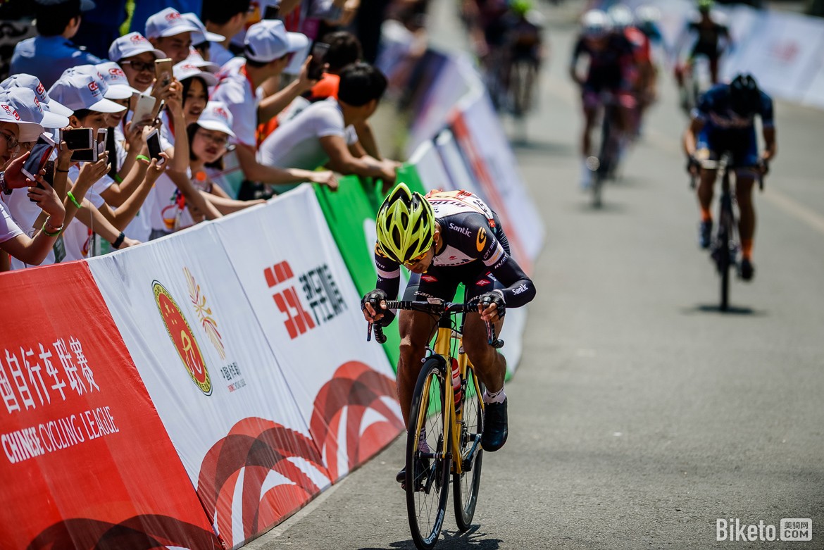 2017年中国自行车联赛四川绵竹站激情开场,本站比赛也是中国自行车联赛有史以来第一场多日赛。第一天为AB点的赛事,终点是一个近两公里平均坡度差不多8%的上坡冲刺(数据来源车手口中)。既然为多日赛,各大车队的目标都很明确,不会放走任何一只兔子抢到时间差,最后爬坡各凭本事。