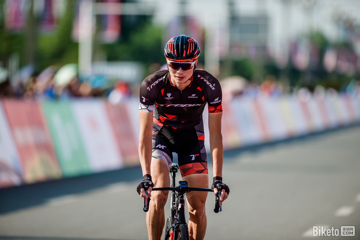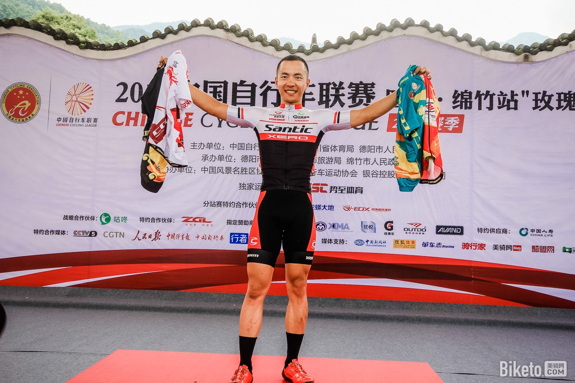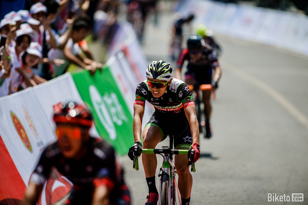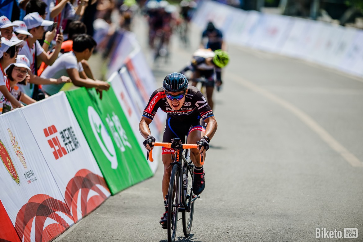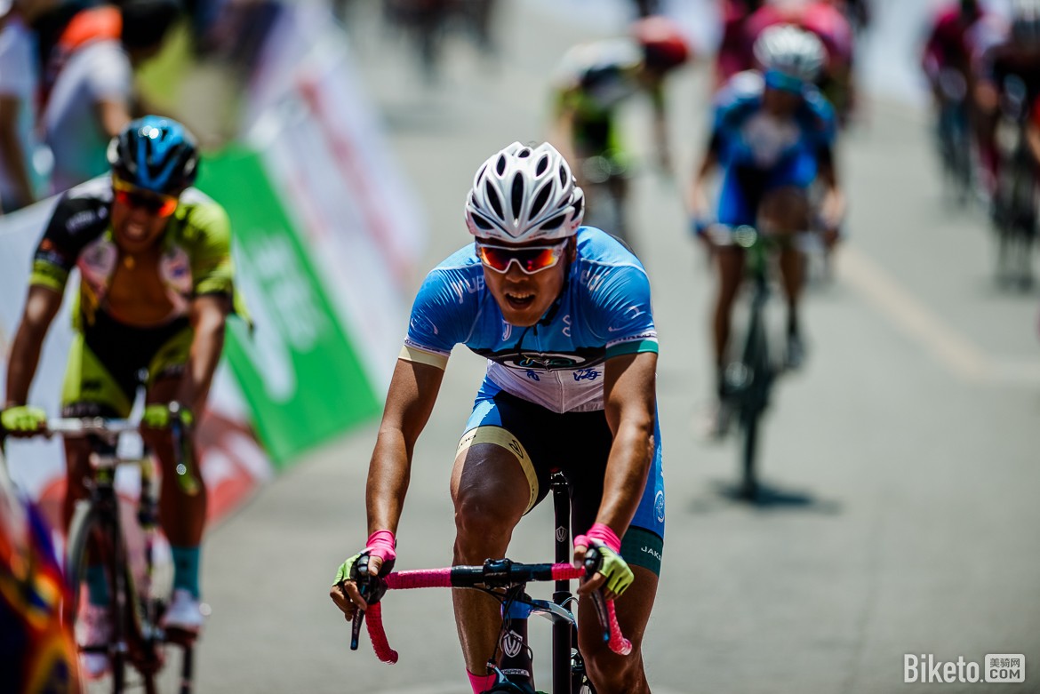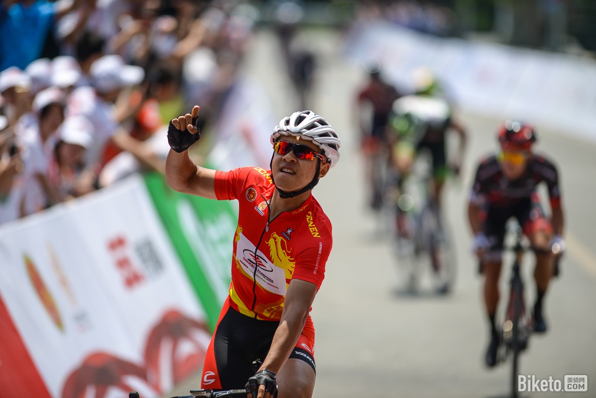 最后在一场攻防大战中,第一个途中冲刺点被巫帛宏拿下,胡浩第二,桂泽义第三;第二个途中冲刺点前三是徐鑫灵,邹镕禧,胡浩。在最后的上坡冲刺中,胡浩率先过线获得冠军,他也凭借途中冲刺点和终点冲刺的强势表现,一个人包揽了今天比赛的所有荣誉衫(赛段冠军白龙衫,单站个人总成绩冠军青龙衫,个人冲刺积分第一黑龙衫,另外还有他本身穿有总成绩第一的红衫)。凯路仕烈风车队的朱梵心获得亚军,哲步中国车队的陈龙获得第三。下面看看本场比赛图集: