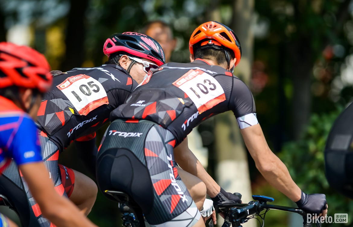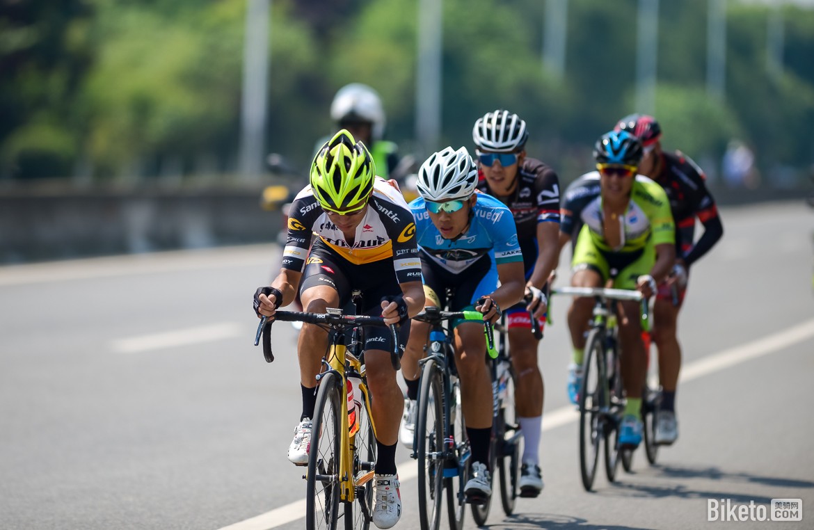 没错,他们真的搞事儿了,随着小黑一个全力的加速(据说是近60速度拉扯出去的),刘祝庆迅速跟进;并且带出了亚塔骑车队的霍海兵、阅骑网车队的邱浩、诺飞客车队的洪坤弘。五人组成的兔子集团全力配合迅速拉开和大集团的差距!为什么是这几人呢?看看成绩单就明白,小黑和刘祝庆没什么总成绩威胁,而其他三人分别为11/12/13名时间差只有两秒,可以说是互相盯防。